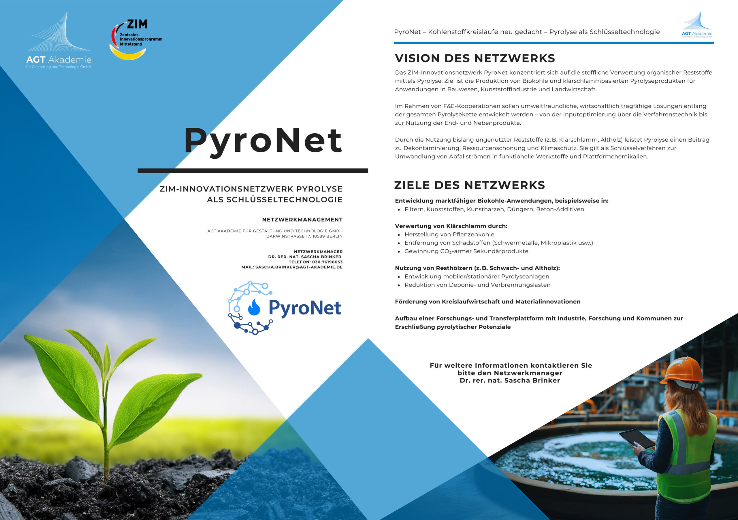 Das ZIM-Innovationsnetzwerk PyroNet widmet sich der ganzheitlichen Nutzung und Weiterentwicklung von Pyrolyseverfahren zur stofflichen Verwertung organischer Reststoffe und zur Rückgewinnung wertvoller Sekundärrohstoffe. Im Fokus steht die Produktion von Biokohle und klärschlammbasierten Pyrolyseprodukten für den Einsatz in verschiedenen Anwendungsfeldern – von der Bau- und Kunststoffindustrie bis zur Landwirtschaft.