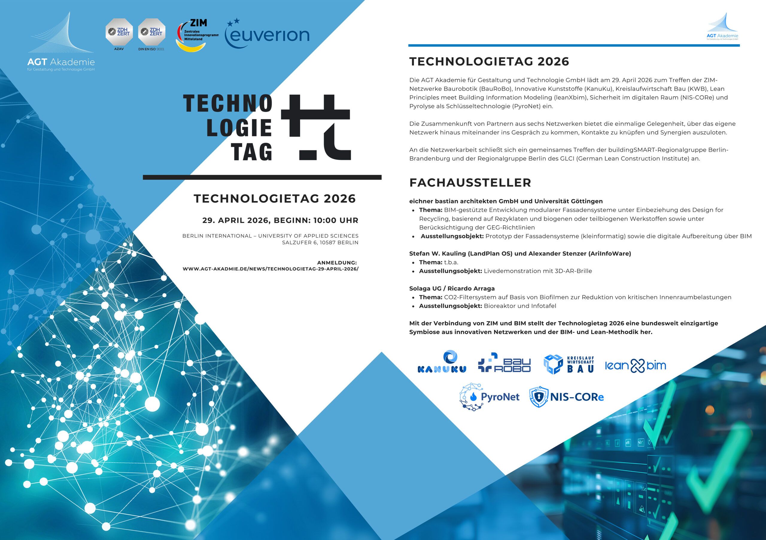 Die AGT Akademie für Gestaltung und Technologie GmbH lädt zum Technologietag 2026 ein.